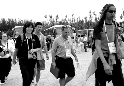 美國(guó)女排一行于昨天下午4點(diǎn)左右達(dá)到首都機(jī)場(chǎng)3號(hào)航站樓。在從正常出口走出的美國(guó)女排隊(duì)員的“掩護(hù)”下,郎平從其它通道直奔停車場(chǎng)大巴,但還是被一些細(xì)心的記者“堵”到。她簡(jiǎn)單地聊了兩句,“北京奧運(yùn)會(huì)是全世界人民的奧運(yùn)會(huì),希望大家盡情享受。我們球隊(duì)的首要任務(wù)是小組出線,而且盡可能力爭(zhēng)頭名”。美國(guó)隊(duì)與中國(guó)隊(duì)、古巴隊(duì)等分在A組,B組則云集巴西、俄羅斯和意大利3支超一流強(qiáng)隊(duì)。如果不能獲得A組第一,那么在關(guān)鍵的1/4決賽中,將遭遇B組的強(qiáng)勁對(duì)手。郎平表示,希望美國(guó)隊(duì)奉獻(xiàn)出最好的比賽。