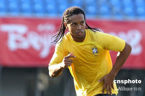 圖:羅納爾迪尼奧認(rèn)真進(jìn)行奧運(yùn)賽前訓(xùn)練