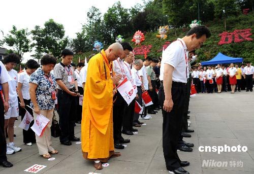 樂山起跑儀式上與會(huì)全體為地震遇難者默哀