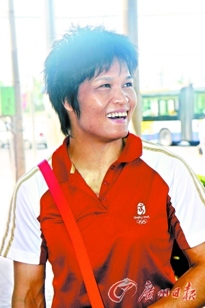 離北京奧運(yùn)會(huì)開賽還剩下不到一個(gè)星期,中國(guó)代表團(tuán)所有運(yùn)動(dòng)健兒均進(jìn)入了最后的備戰(zhàn)階段,要在這個(gè)時(shí)候“逮”到?jīng)_金選手并進(jìn)行采訪談何容易?不過(guò),記者就在今天偶然得到了這一良機(jī)。大約在中午12時(shí)左右,記者正與兩名同行一起走在奧林匹克體育中心東門的馬路邊,迎面而來(lái)的是穿著紅色運(yùn)動(dòng)服的兩位女士!斑@不是冼東妹嗎?”記者曾經(jīng)于2004年冼東妹在雅典奪冠的前夜,特地到她位于廣州體院的家里進(jìn)行過(guò)采訪,對(duì)這位憨厚的廣東女子留下了深刻的印象。冼東妹也認(rèn)出了記者,笑容滿面地打了個(gè)招呼。