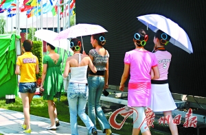 記者注意到,李媛媛在卸防曬霜時(shí)并沒有對(duì)臉部和發(fā)式進(jìn)行絲毫改變。“我們基本是早晨來到這里后一天就化一次妝,每次化妝至少需要兩個(gè)小時(shí)。為了防止臉部被曬傷,往往臉上的粉要涂得比平常厚得多!彼f,“如果卸妝的話,一旦有任務(wù)肯定來不及重化,所以我們一天中都會(huì)掛著厚厚的‘面具’活動(dòng)!弊髡: 白志標(biāo)