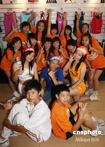來自中國(guó)南部沿海的廣西省南寧市二十六中學(xué)的拉拉隊(duì),是北京奧運(yùn)賽場(chǎng)上近30支專業(yè)拉拉隊(duì)中最年輕的一支,也是最具國(guó)際知名度的團(tuán)體。該拉拉隊(duì)2007年曾登上美國(guó)《新聞周刊》,她們?cè)啻纬稣髟诿绹?guó)奧蘭多舉辦的世界拉拉隊(duì)錦標(biāo)賽,今春剛拿下歷史最好成績(jī),獲“技巧拉拉隊(duì)國(guó)際公開小組別全女生”世界第2,僅次于美國(guó)。她們共13人,由漢、壯兩個(gè)民族組成,即將亮相奧林匹克公園北端的曲棍球館,屆時(shí),她們會(huì)身穿露臍小背心、白色超短裙,搭配“為奧運(yùn)加油”的Logo。中新社發(fā) 任海霞 攝