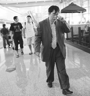 當所有記者都在翹首以盼菲爾普斯出現(xiàn)時,記者在T3航站樓里面發(fā)現(xiàn)了一個熟悉的身影,“棋圣”聶衛(wèi)平。盡管老聶的形象還是那么鮮明、那么容易被認出,但是當他穿過記者包圍圈,走到另外一個出口尋找司機時,現(xiàn)場上百位記者愣是沒有一個人理他……盡管身 邊還是有人認出了這位昔日的風云人物,不時還有中年人在小聲討論,“這不是那個、那個誰嗎?”但是除了快報攝影記者,沒有一家媒體上前拍照……孤獨的聶棋圣獨自一手提著大包,一手拿著許開禎寫的那本揭露官場幕后真相的小說《墮落門》,在出口處等了整整10分鐘,才等到司機。