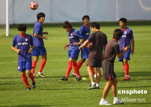 8月5日,參加北京奧運(yùn)會(huì)足球比賽的韓國(guó)國(guó)奧隊(duì)在秦皇島進(jìn)行開(kāi)放訓(xùn)練。8月7日,韓國(guó)國(guó)奧隊(duì)將在秦皇島首戰(zhàn)喀麥隆隊(duì)。 中新社發(fā) 劉新 攝