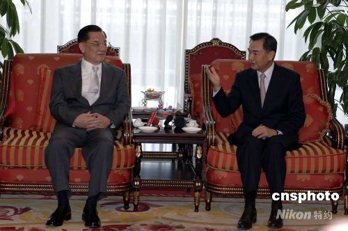 5日下午,中國國民黨榮譽主席連戰(zhàn)夫婦一行抵達北京首都機場,中共中央臺辦主任王毅到機場迎接。 中新社發(fā) 王東明 攝