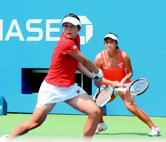 詹詠然、莊佳容自去年澳網(wǎng)開始在國際網(wǎng)壇上發(fā)光,兩人搭檔后的第一個(gè)大滿貫就成功奪銀,美網(wǎng)再度殺入決賽,雖然與冠軍金杯相隔一步,但兩人早已證明“黃金雙嬌”不是隨便玩玩,2007年以來已到手4座WTA巡回賽雙打冠軍。