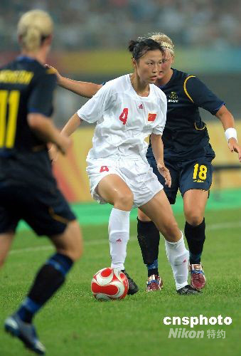 圖為中國女足4號張穎在比賽中。中新社發(fā) 陳文 攝