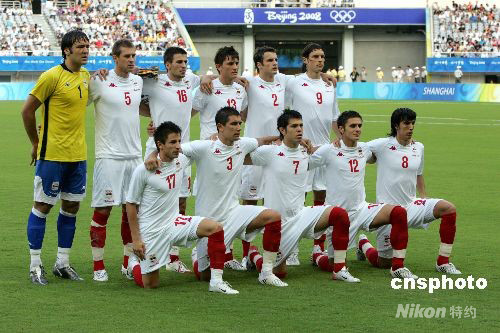 8月7日,北京奧運(yùn)會(huì)上海足球分賽場(chǎng)男足預(yù)賽開(kāi)賽,首場(chǎng)比賽由澳大利亞對(duì)陣塞爾維亞。中新社發(fā) 湯彥俊 攝