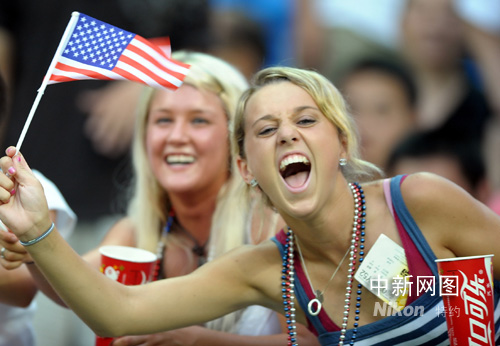 圖:美國(guó)男足力克日本 美女球迷激情狂歡