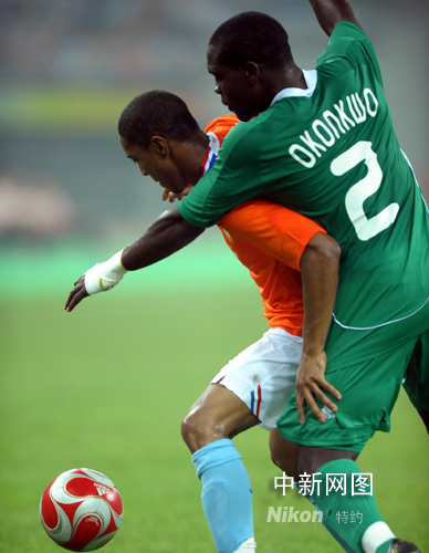 8月7日晚,奧運男足小組賽在天津“水滴”體育場舉行,荷蘭隊身著傳統(tǒng)的橘色球衣迎戰(zhàn)尼日利亞隊。中新社記者 陳文攝
