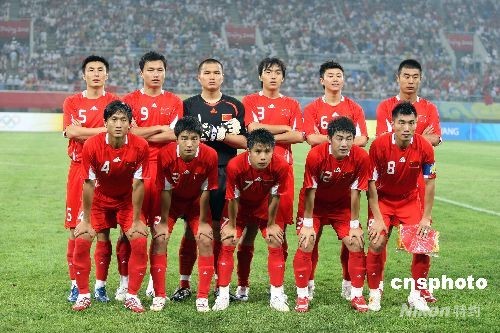 圖:北京奧運(yùn)男足中國(guó)隊(duì)賽前合影