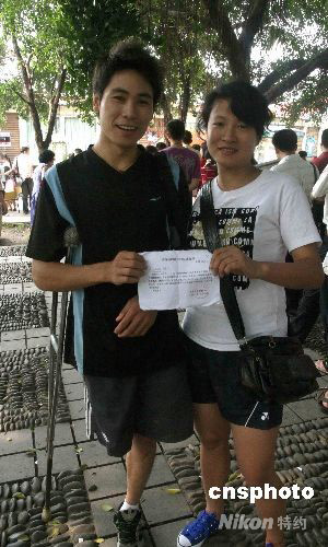 8月8日,重慶市渝中區(qū)婚姻登記處外,曾參加過(guò)中國(guó)殘疾人運(yùn)動(dòng)會(huì)的田徑運(yùn)動(dòng)員王麗娜(右)和羽毛球運(yùn)動(dòng)員程良華(左)正在等候辦理婚姻登記手續(xù)。 中新社發(fā) 周陽(yáng) 攝