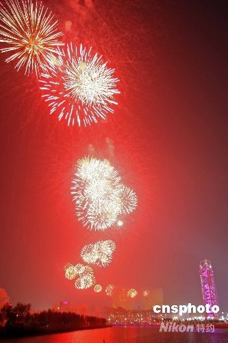 圖:第29屆夏季奧運(yùn)會(huì)盛大開幕焰火映天(4)