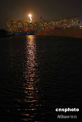 8月8日,第29屆夏季奧運(yùn)會(huì)在北京奧林匹克公園內(nèi)的國(guó)家體育場(chǎng)“鳥巢”舉行。李寧點(diǎn)燃北京奧運(yùn)會(huì)主火炬,奧運(yùn)圣火在鳥巢上空熊熊燃燒。 中新社發(fā) 盛佳鵬 攝