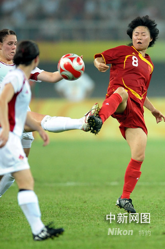 8月9日晚,中國女足在天津奧體中心水滴體育場與加拿大女足進(jìn)行奧運(yùn)第二場小組賽的較量,上半時雙方各進(jìn)一球。中新社記者 陳文 攝