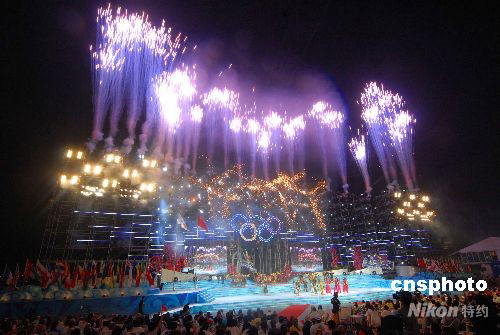 8月9日晚8點(diǎn),2008年北京奧運(yùn)會(huì)帆船比賽啟動(dòng)儀式在青島奧林匹克帆船中心奧運(yùn)主題公園舉行,場(chǎng)面氣勢(shì)恢宏。 中新社發(fā) 王曉光 攝