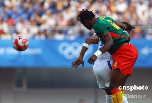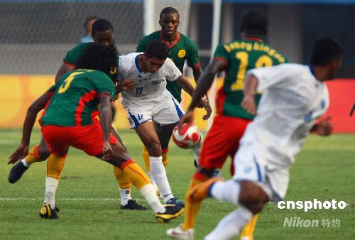 8月10日,北京奧運會男足預(yù)賽,在秦皇島奧體中心“非洲雄獅”喀麥隆對陣洪都拉斯。 中新社發(fā) 劉新 攝