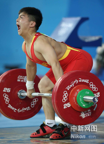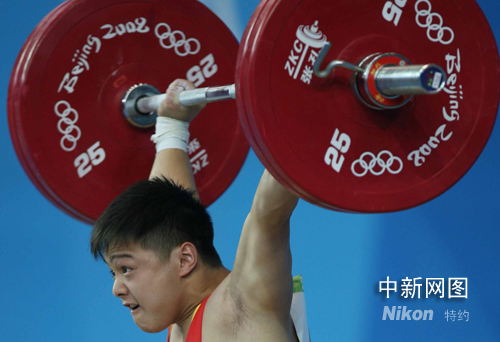 年僅十七歲的中國選手龍清泉在北京奧運會舉重項目男子56公斤級的比賽中,勇奪冠軍。這是中國軍團在本屆奧運會上獲得的第六面金牌。中新社記者 武仲林 攝