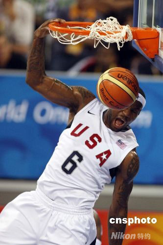 圖:中美男籃大戰(zhàn) “小皇帝”詹姆斯飛身爆扣