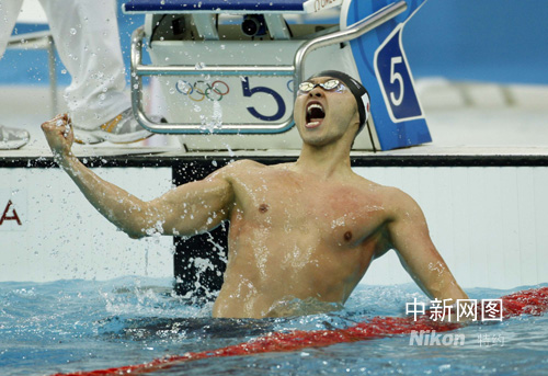 8月11日,在北京奧運會游泳男子100米蛙泳比賽中,日本選手北島康介以58.91秒成績打破世界紀錄奪得該項目冠軍。中新社發(fā) 杜洋 攝