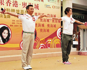 中新網(wǎng)8月11日電 據(jù)香港文匯報(bào)報(bào)道,剛從奧運(yùn)開幕儀式上傳遞火炬的前體操金牌得主李小雙和為奧運(yùn)開幕式擔(dān)任表演嘉賓的容祖兒,10日雙雙為香港奧海城舉行“一面金牌 一個(gè)夢(mèng)想的實(shí)現(xiàn)”主持揭幕儀式。