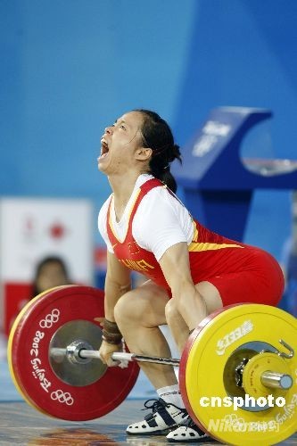 圖:中國女舉陳艷青58公斤級決賽奪金