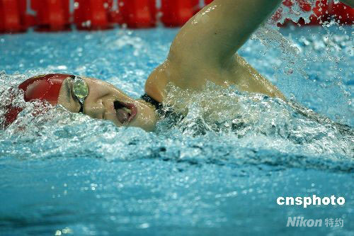 8月11日,北京奧運(yùn)會女子200米自由泳預(yù)賽中,中國選手龐佳穎成績?yōu)?分57秒37,位列小組第一并打破奧運(yùn)紀(jì)錄。中新社發(fā) 杜洋 攝