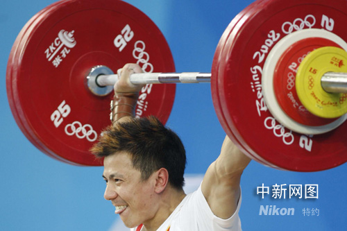 8月11日,在北京奧運(yùn)會(huì)舉重男子62公斤級(jí)比賽中,中國選手張湘祥贏得金牌。中新社發(fā) 盛佳鵬 攝