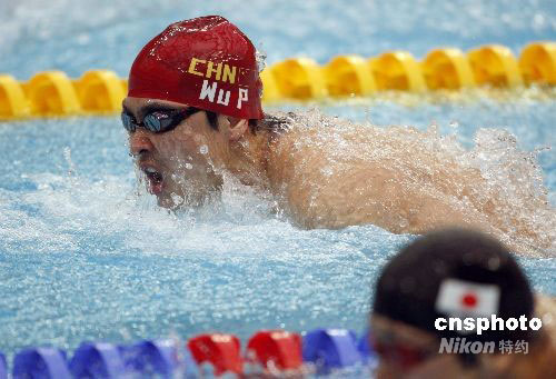 8月12日,中國選手吳鵬以1分54秒93的成績,順利晉級北京奧運(yùn)會男子200米蝶泳決賽。中新社發(fā) 杜洋 攝