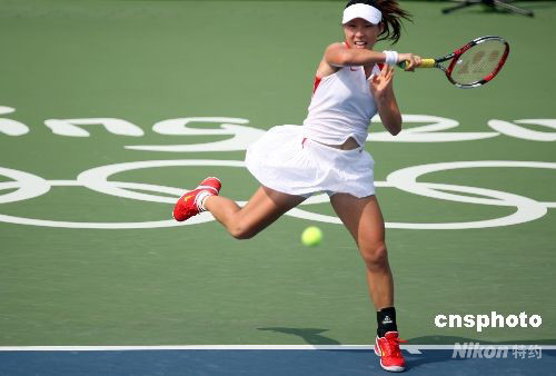 8月12日,中國網(wǎng)球名將鄭潔在北京奧運會女子網(wǎng)球單打第2輪比賽中,以2:1戰(zhàn)勝西班牙選手利亞戈斯特拉。 中新社發(fā) 武仲林 攝
