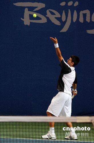 8月12日,網(wǎng)球男單第二輪爭(zhēng)奪中,大賽3號(hào)種子、塞爾維亞天才少年德約科維奇直落兩盤(pán),以總比分2比0擊敗德國(guó)老將舒特勒,進(jìn)入下一輪。中新社發(fā) 王韶驊 攝