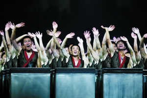 張藝謀留出幾秒鐘,讓忙活了六七個(gè)小時(shí)的字模演員們露了個(gè)臉。