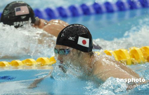 8月14日,在男子200米蛙泳決賽中,日本名將北島康介以2分07秒64的成績獲得冠軍并打破奧運會紀錄,繼100米后再次衛(wèi)冕200米項目的金牌,成為蛙泳的雙冠王。 中新社發(fā) 杜洋 攝