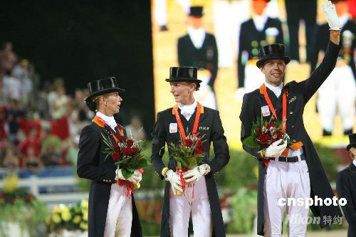 圖:荷蘭隊(duì)獲得奧運(yùn)馬術(shù)盛裝舞步團(tuán)體賽銀牌