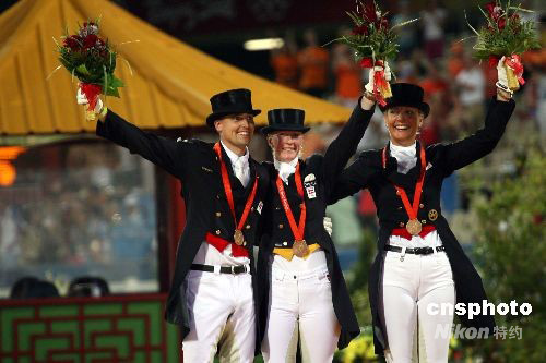 圖:丹麥隊獲得奧運馬術(shù)盛裝舞步團體賽銅牌