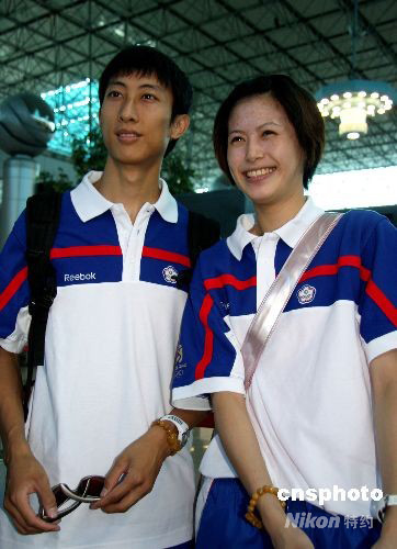 圖為雅典奧運(yùn)冠軍朱木炎及其女友楊淑君行前在桃園機(jī)場。