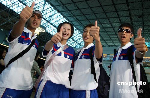 8月15日上午,中華臺北跆拳道代表隊搭乘兩岸周末包機(jī)飛赴北京,參加北京奧運(yùn)會。 中新社發(fā) 董會峰 攝