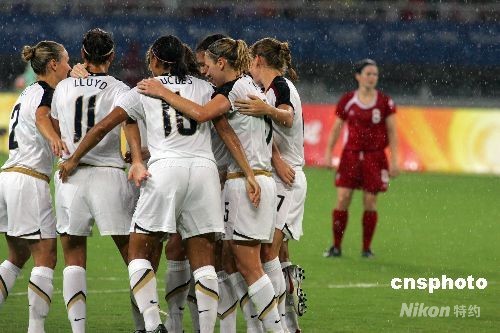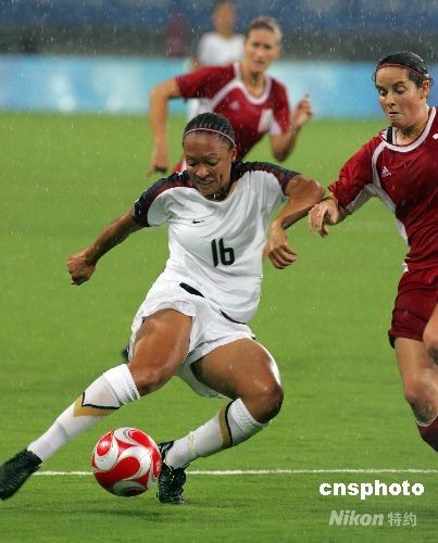 8月15日,北京奧運(yùn)會(huì)女足,美國VS加拿大的比賽在上海體育場進(jìn)行。最終,美國隊(duì)以2:1戰(zhàn)勝加拿大隊(duì),挺進(jìn)四強(qiáng)。中新社發(fā) 湯彥俊 攝