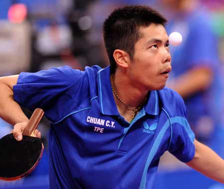 在男子乒乓球團(tuán)體比賽中,中華臺北代表隊(duì)1比3敗給韓國。其中唯一得勝點(diǎn)由莊智淵獲得。(上圖)