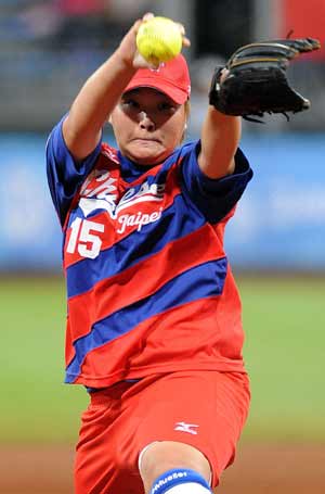 北京奧運(yùn)女子壘球比賽中華臺北隊(duì)于14日晚間出戰(zhàn)委內(nèi)瑞拉隊(duì),投手闕明慧擔(dān)任救援,成功封鎖對手打擊。(下圖)