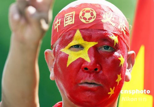 8月16日,一名觀眾盛裝出席北京奧運(yùn)會(huì)賽艇比賽,為中國(guó)隊(duì)加油。中新社發(fā) 武仲林 攝