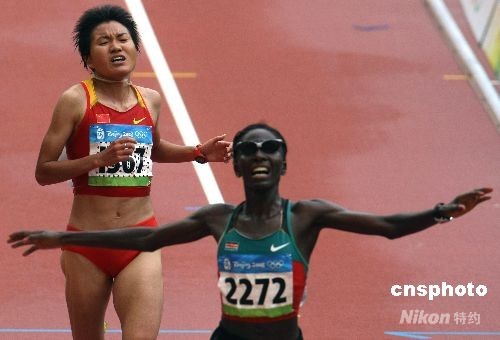 8月17日,在北京奧運女子馬拉松決賽中,中國選手周春秀以二小時二十七分零七秒的成績奪得銅牌。中新社發(fā) 任晨鳴 攝