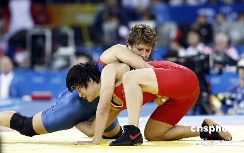 8月17日,中國(guó)選手王嬌獲得北京奧運(yùn)會(huì)女子自由式摔跤72公斤級(jí)金牌。中新社發(fā) 盛佳鵬 攝