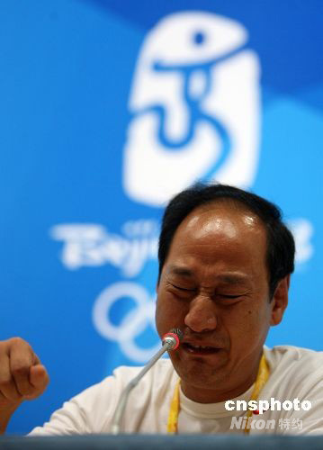 8月18日上午,在北京奧運(yùn)男子110米欄第1輪第6組比賽中,集十幾億人“寵愛(ài)”為一身的中國(guó)選手劉翔在第一次起跑后因腿傷遺憾退出比賽。賽后,教練孫海平說(shuō)道劉翔的傷病與毅力,泣不成聲。中新社發(fā) 任晨鳴 攝