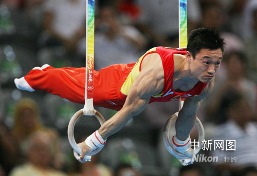 8月18日,中國選手楊威在北京奧運會吊環(huán)決賽中表現(xiàn)出色,奪得銀牌。中新社記者 武仲林 攝