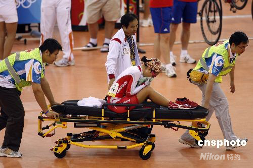 8月18日,場地自行車女子記分賽決賽在北京老山自行車館進(jìn)行,14號日本選手和田見里美在比賽中與其他選手相撞受傷。 中新社發(fā) 盛佳鵬 攝