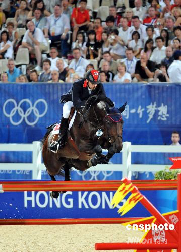 八月十八日晚,奧運馬術(shù)場地障礙賽團體賽決賽(第二輪)及個人賽(第三輪資格賽)在香港沙田賽場舉行,圖為唯一進入個人賽(第三輪資格賽)的中國香港選手林立信策騎“城市”單騎應戰(zhàn)。中新社發(fā) 鄧慶樂 攝