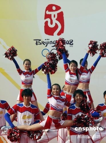 北京2008奧運(yùn)帆船、帆板比賽在青島如期舉行,賽場啦啦隊的表演為賽事增加了更多的色彩。中新社發(fā) 趙振清 攝