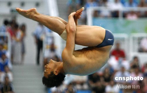 8月19日,北京奧運(yùn)會男子3米板半決賽在“水立方”進(jìn)行,中國選手何沖順利晉級決賽!≈行律绨l(fā) 杜洋 攝