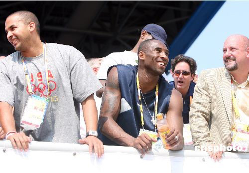 8月19日,美國籃球巨星科比前往奧運沙灘排球現場,為美國選手加油。 中新社發(fā) 武仲林 攝